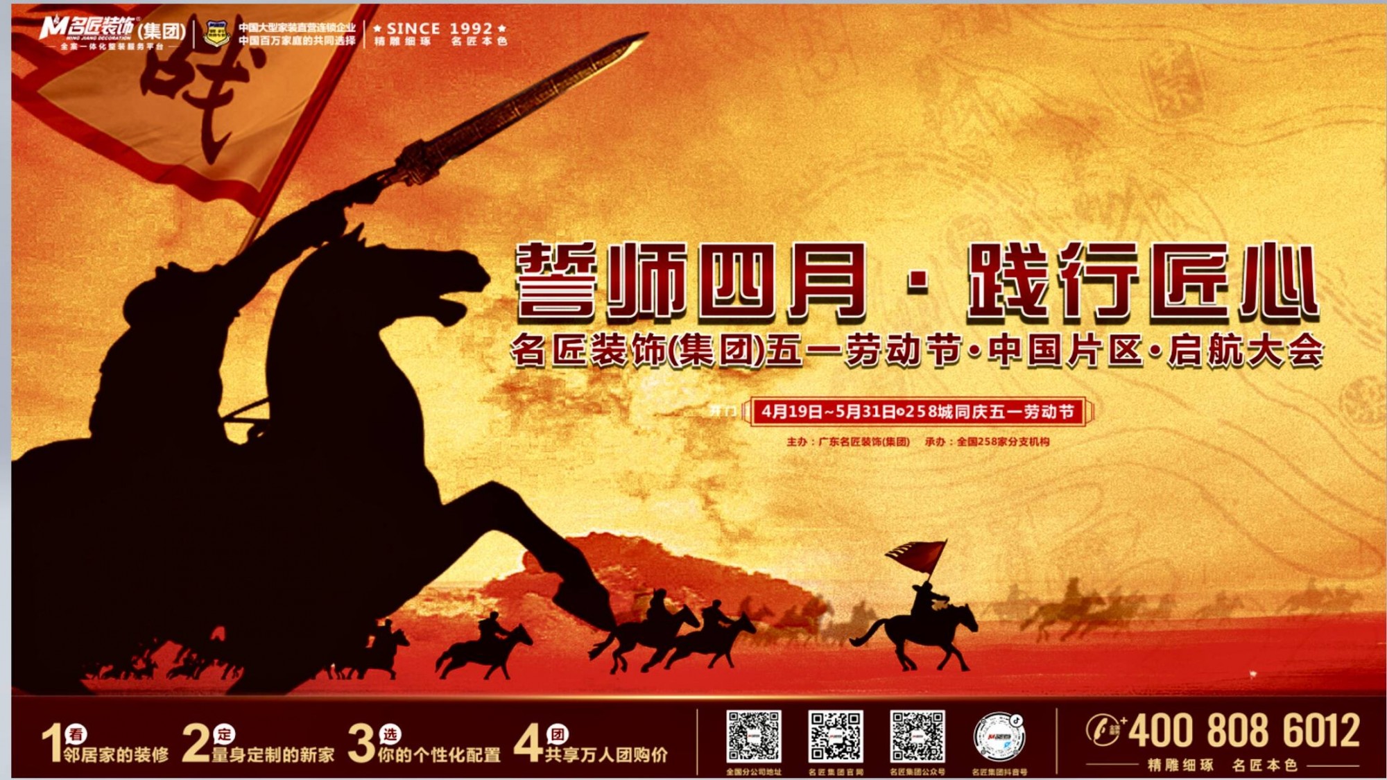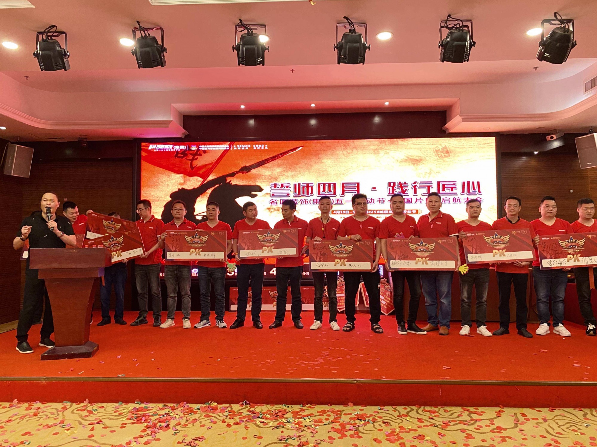 2021年4月11日, 佛山大區(qū)廣東片區(qū)“向美好生活致敬”五一勞動節(jié)大聯(lián)動誓師大會,正式拉開五一家裝盛會的帷幕,守情懷承匠心,滿足業(yè)主朋友們對美好生活的一切暢想。